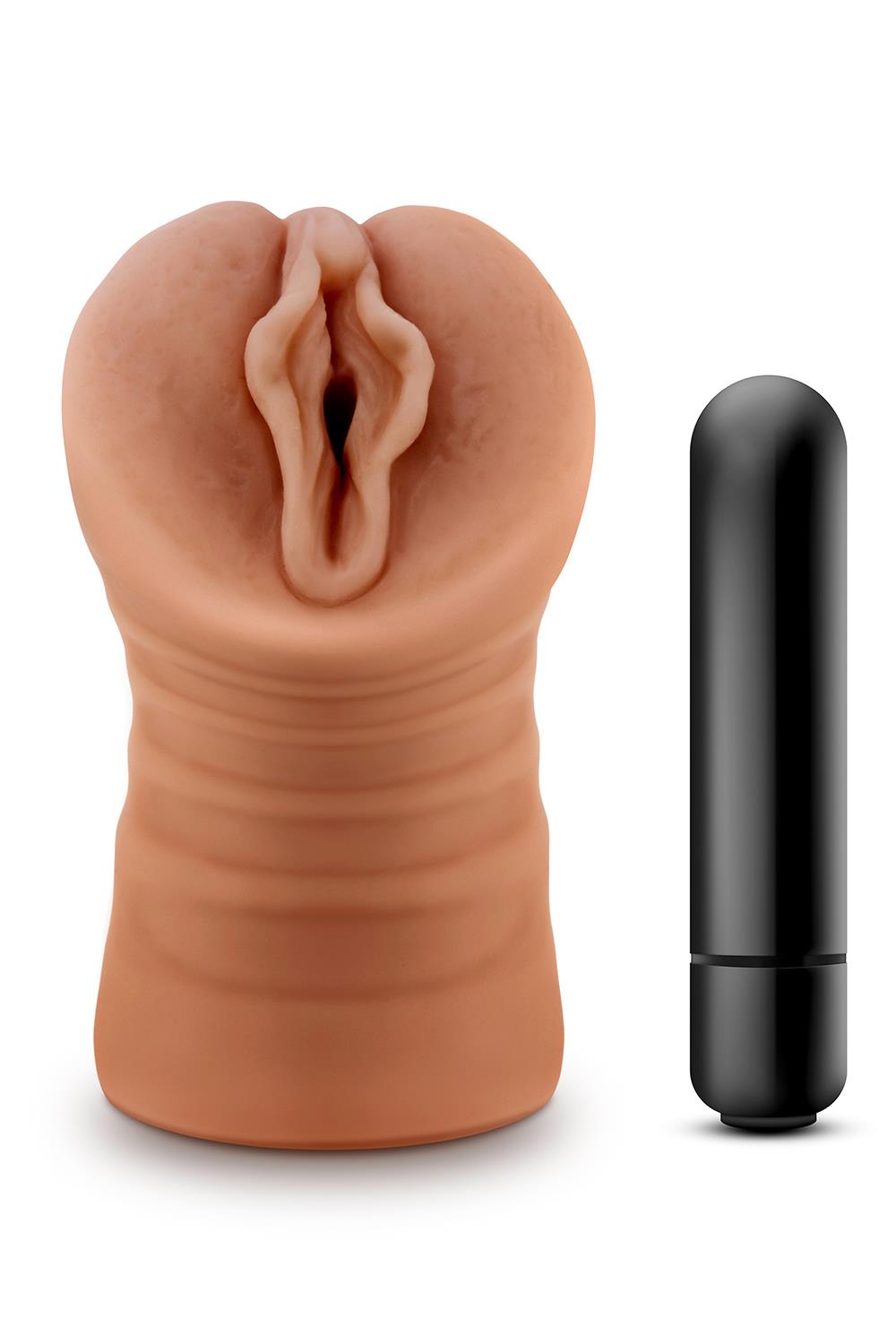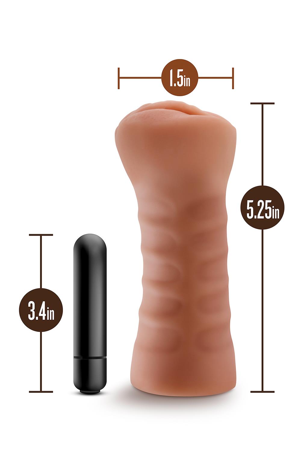 The M for Men Sofia is soft, open, and ready to play. This realistic stroker's canal is filled with sensational textures. It comes with a vibrating bullet, to enhance sensation as you stroke. Open-ended and easy to clean, Sofia will accommodate any size penis. Made of premium TPE, it's high-quality and body safe. Bullet vibe requires 1 AAA battery.