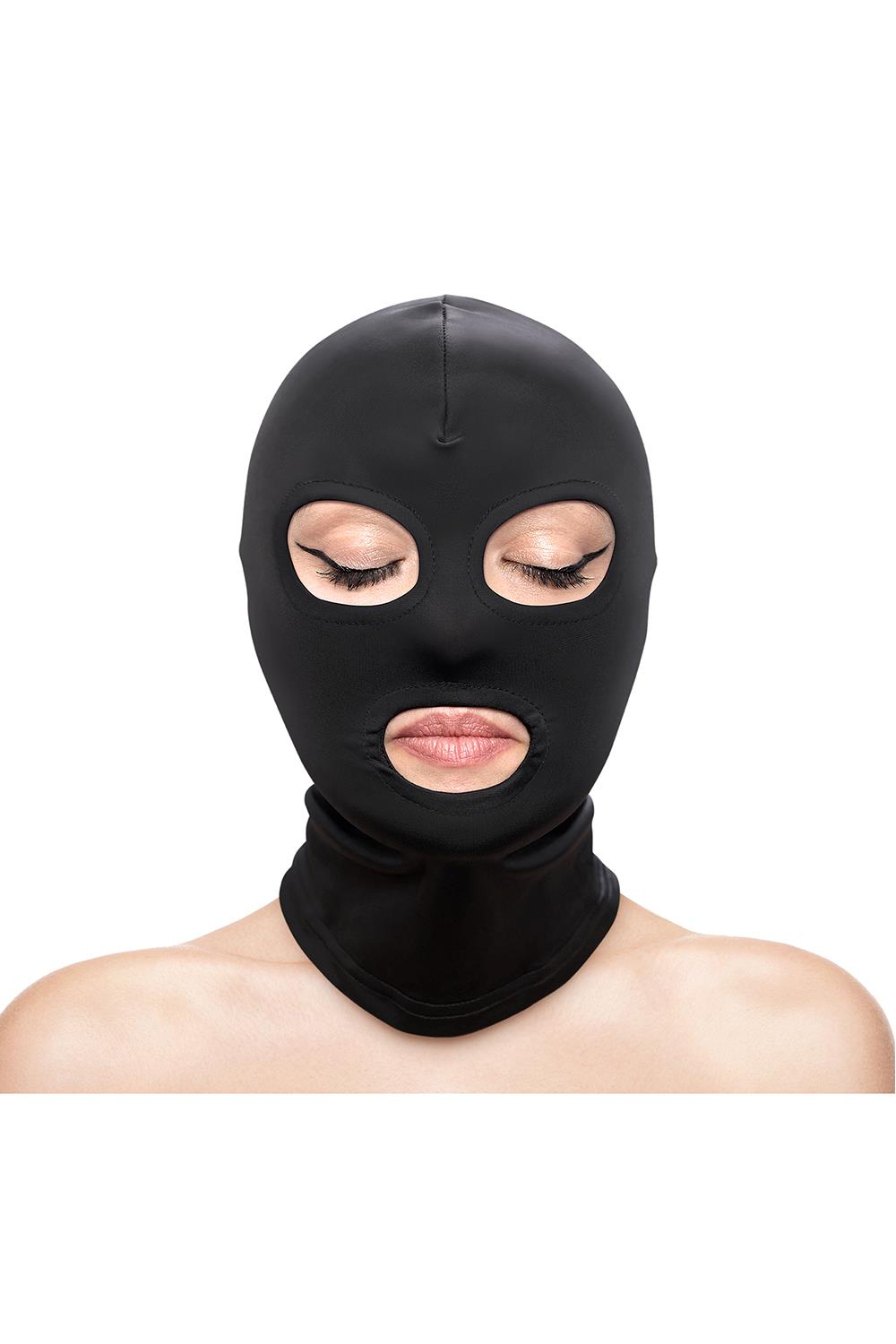 Tease and excite your submissive lover with Fetish & Fashion’s Eyes and Mouth Hood. Made from soft and snug nylon, this provocative hood exposes only the eyes and mouth. One size fits most.