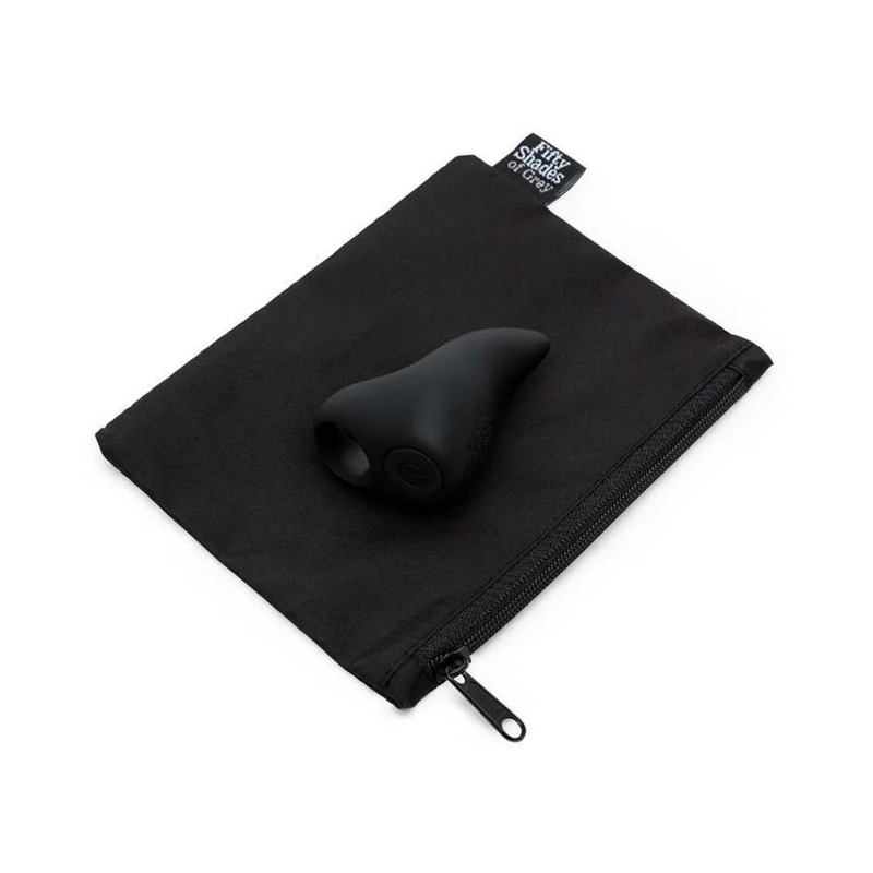 Sculpted from velvet-soft silicone with a perfectly curved, rounded tip, the pocket-sized Fifty Shades of Grey Sensation Finger Vibrator in Black delivers 20 powerful speeds and patterns with explosive accuracy. Ideal for spectacular solo arousal and breathtaking foreplay. Slide this sleek vibrator onto your finger and enjoy tantalizing sensations, whether you choose to pleasure your own erogenous zones or tease your lover’s sweet spots. Includes a USB recharging cable and a Repreve® fabric storage bag. Slather generously with a water-based lubricant for extra pleasurable sensations. Part of the Fifty Shades of Grey Official Pleasure Collection approved by author E L James.